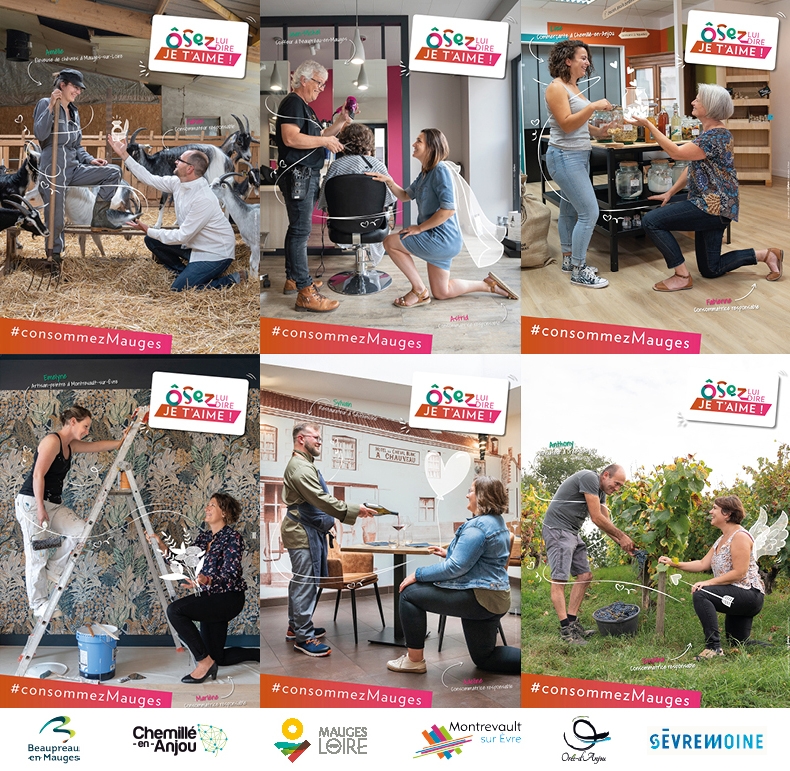 La situation exceptionnelle de crise sanitaire a vu le retour du citoyen à la consommation locale. Commerçants, artisans, producteurs, entrepreneurs… ils développent leurs activités tout en apportant du bien vivre dans nos communes, alors soutenons-les ! Les communes des Mauges lancent une campagne “Ôsez lui dire je t’aime !” sous forme d’affiches décalées. Votre commerçant vous connaît, vous le connaissez… mais sait-il à quel point il compte pour vous ? La prochaine fois que vous faites appel à lui, n’oubliez pas de lui déclarer votre flamme ! #consommezMauges