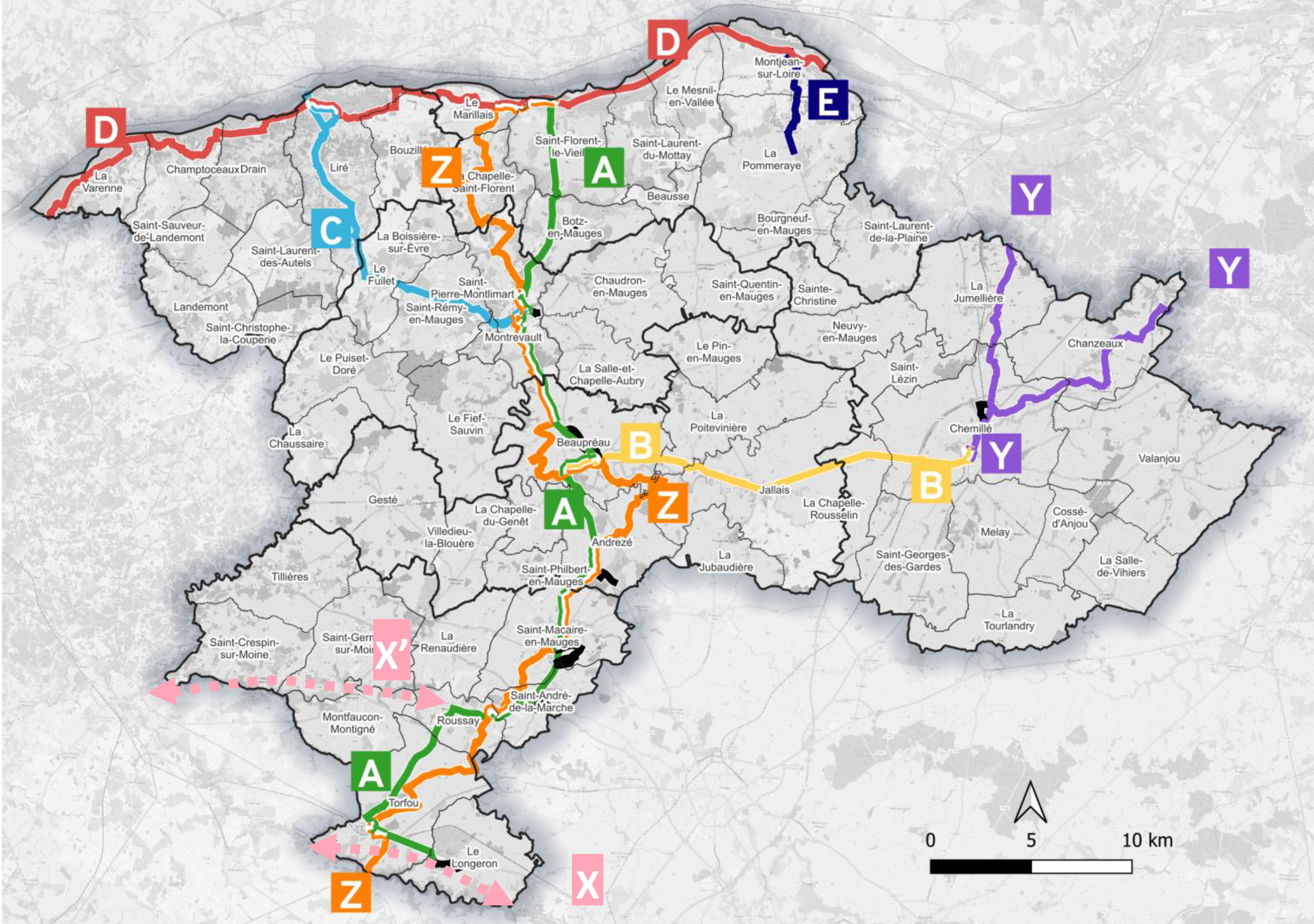 Au total, 9 itinéraires parcourant le territoire des Mauges ont été retenus. Soit 238 kilomètres de voies dédiées au vélo