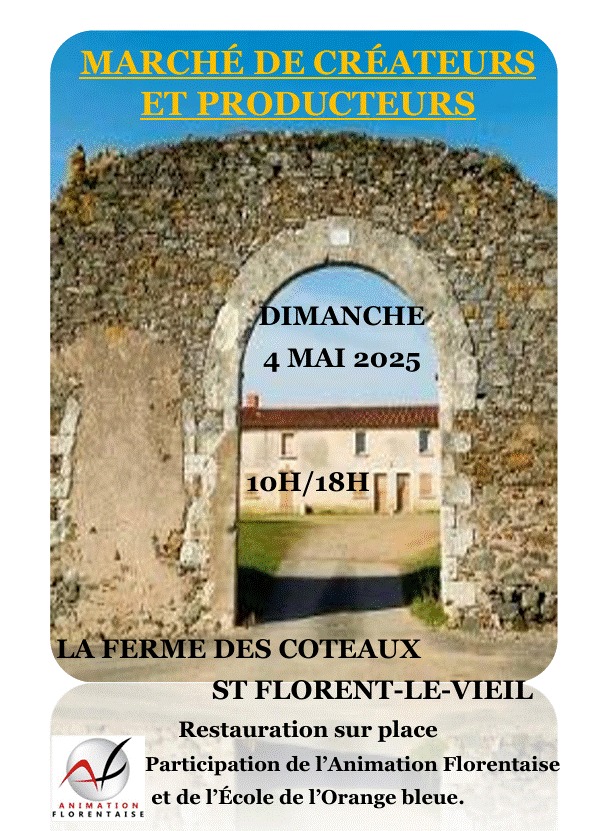 L’Animation Florentaise organise sa 2ème édition du Marché de créateurs et producteurs à la Ferme des Coteaux à Saint-Florent-le-Vieil / Mauges-sur-Loire.