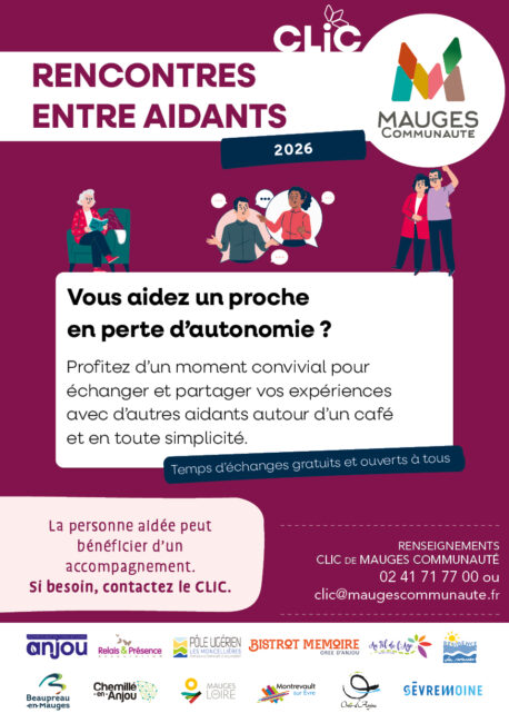 Constatant le besoin des aidants de vouloir partager leur vécu, leur expérience et leurs difficultés afin d’améliorer leur quotidien, le CLIC de Mauges Communauté et ses partenaires, proposent des moments de discussion libre et conviviaux aux aidants du territoire. Ces rencontres entre aidants et/ou professionnels permettent à chacun de pouvoir poser des questions avec une écoute attentive et confidentielle dans le respect de l’anonymat de chacun.