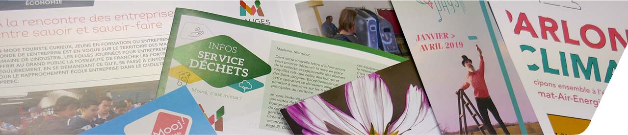 Publications Explorez – la rencontre thématique des Mauges La Lettre d’info du service Déchets La Lettre de l’eau L’info magazine Les Cahiers des Mauges Collecte et prévention des déchets Eau et Assainissement Mobilités // Réseau MOOJ ! Solidarités-Santé Urbanisme et Habitat Saison culturelle de Scènes de Pays Rapports d’activité et Feuilles de route Emploi et Formation Cartes des Mauges