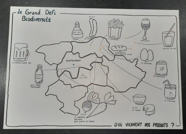 La valorisation des producteurs locaux est un outil de communication très apprécié. Dans l’exemple ci-dessous, retrouvez les producteurs (et productions) du Grand Défi Biodiversité de juin 2023 à Montrevault.