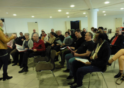 Proposition des activités : chorale, jeux de société, théâtre-mime, yoga du rire, groupes de parole, bowling, journées festives…