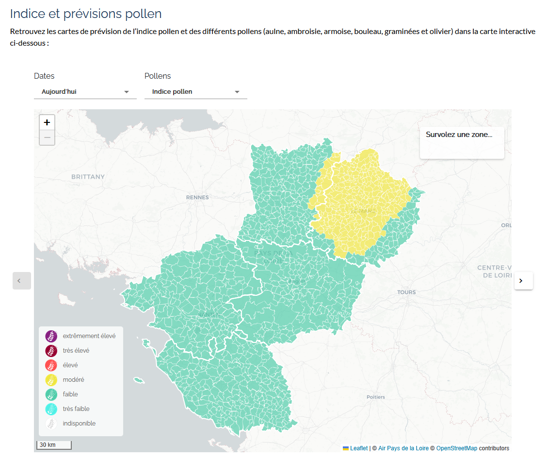 🌐 Consulter les prévisions polliniques (Air Pays de la Loire) en cliquant sur la carte ci-dessous :