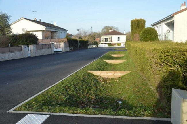 Exemple de noues dans un quartier de Saint-Pierre-Montlimart