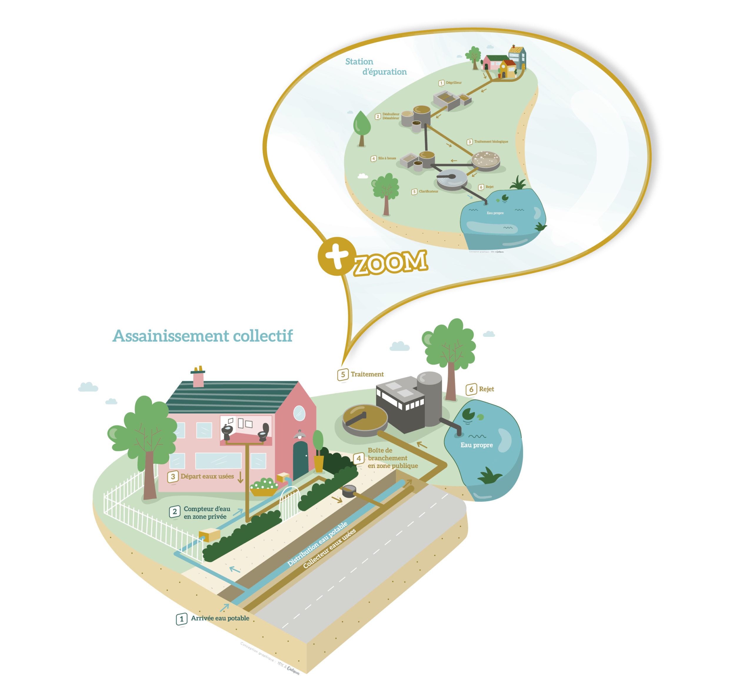 L’assainissement collectif désigne le système d’assainissement dans lequel les eaux usées sont collectées et acheminées de manière collective vers une station d’épuration pour y être traitées avant d’être rejetées dans le milieu naturel.