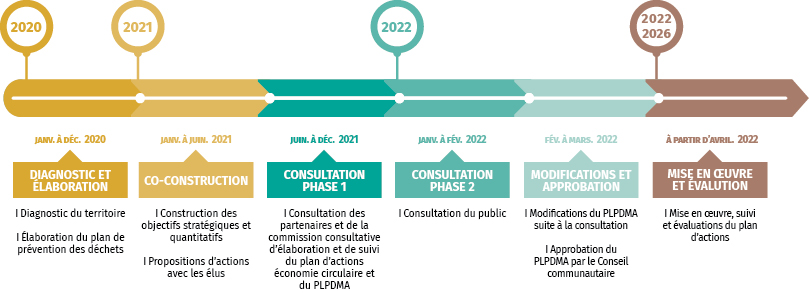 Le Plan de prévention des déchets ménagers et assimilés 2021-2026 s’est construit en parallèle du programme d’Économie Circulaire. Il a bénéficié d’un diagnostic de territoire pour élaborer la stratégie et les objectifs, en concertation avec les élus de la Commission Politique des déchets, les partenaires et les services de la collectivité.